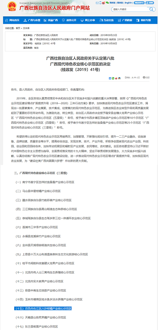日前,自治區(qū)人民政府決定授予全區(qū)25個(gè)現(xiàn)代特色農(nóng)業(yè)核心示范區(qū)“廣西現(xiàn)代特色農(nóng)業(yè)核心示范區(qū)(三星級)”稱號,百色市右江區(qū)六沙柑橘產(chǎn)業(yè)核心示范區(qū)榜上有名。