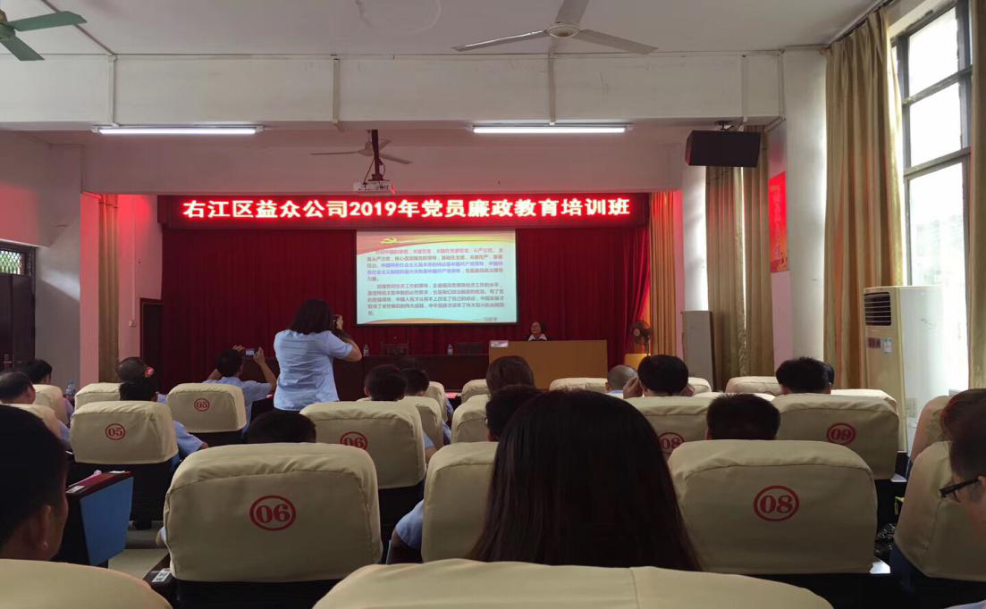 為積極響應(yīng)黨中央關(guān)于黨風(fēng)廉政建設(shè)的號(hào)召,強(qiáng)化公司員工廉潔從業(yè)意識(shí),營(yíng)造良好的企業(yè)氛圍。7月19日,益眾投資公司組織部門負(fù)責(zé)人、黨員職工、業(yè)務(wù)骨干等一行共55人在右江區(qū)委黨校進(jìn)行黨員廉政教育培訓(xùn)。