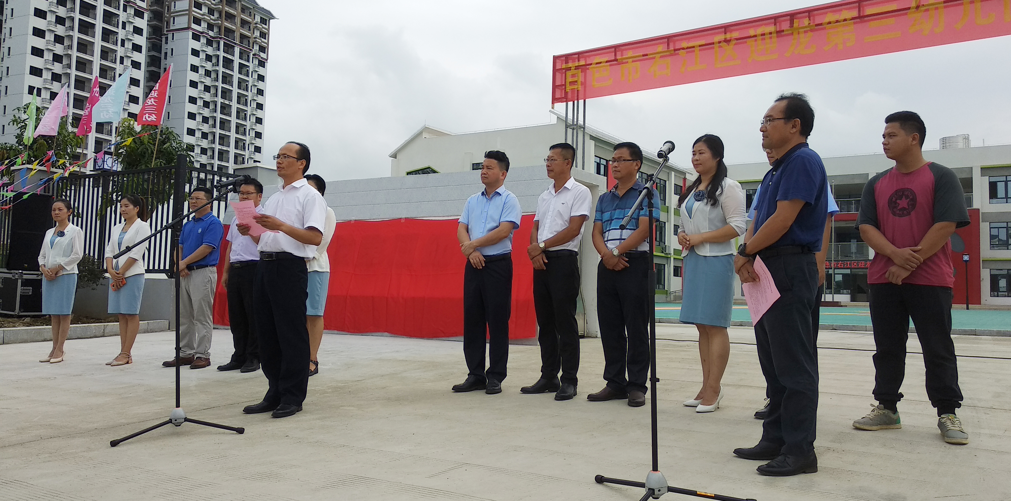 ????????右江區(qū)委常委、宣傳部部長、區(qū)人民政府副區(qū)長王世凡,區(qū)教育局、益眾公司領(lǐng)導(dǎo),右江區(qū)有關(guān)部門領(lǐng)導(dǎo)、迎龍三幼師生及家長代表等參加了揭牌儀式。