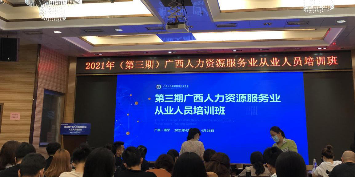 ????????2021年(第三期)廣西人力資源服務業(yè)從業(yè)人員培訓班近日在南寧舉辦,各市企事業(yè)單位從事人力資源工作人員,以及全區(qū)各類人力資源服務機構從業(yè)人員參加培訓,益嘉人資公司派一人參加。