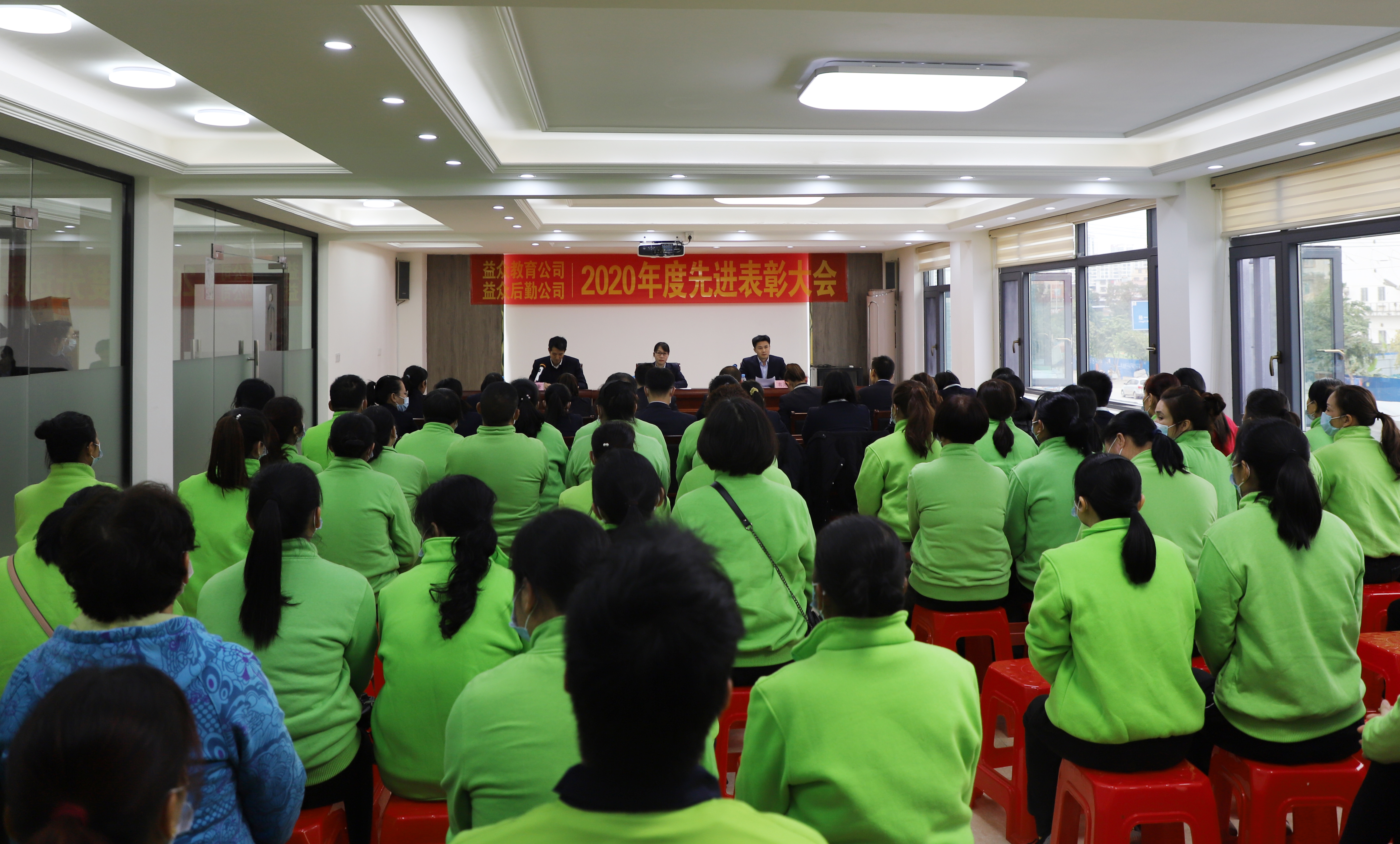 ????????1月29日下午,益眾教育公司、益眾后勤公司在龍景辦公區(qū)二樓會議室召開2020年度先進表彰大會。