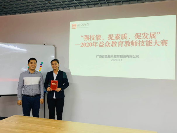 ??? 為了進(jìn)一步提升教師課堂授課水平,培養(yǎng)教師的教學(xué)技能和綜合素質(zhì),2020年3月下旬,廣西百色益眾教育投資有限公司開展了主題為“強(qiáng)技能、提素質(zhì)、促發(fā)展”的教師教學(xué)技能大賽。比賽分為數(shù)學(xué)組和語文組,以現(xiàn)場講課形式進(jìn)行,賽點是考察教師們對教學(xué)目標(biāo)的把控、教學(xué)內(nèi)容的理解、教學(xué)過程的設(shè)計和教學(xué)方法的運用等教學(xué)綜合能力。參賽教師各有特點,比賽過程精彩紛呈,教師們展現(xiàn)出了好的教學(xué)素養(yǎng)、嫻熟的教學(xué)技能,達(dá)到了以賽代練、互相學(xué)習(xí)、共同成長的效果。(通訊員:覃世翔)