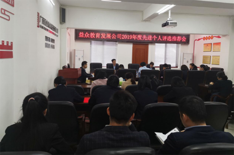 為進一步提高干部職工的凝聚力和戰(zhàn)斗力,樹立典型,發(fā)揮先鋒模范作用,根據(jù)公司總部的《2019年度先進集體、先進個人評選表彰工作方案》文件要求,益眾教育公司組織開展2019年度評先評優(yōu)工作,公司本部、下屬公司全體管理人員參會。評先評優(yōu)工作本著公開、公平、公正的原則,以實事求是的態(tài)度,通過不記名投票方式進行評選,選拔出一批政治素質(zhì)高、崗位技能強、工作完成滿意度佳、群眾評價好的先進員工。