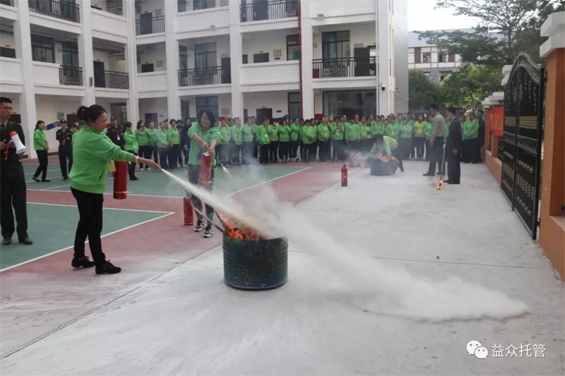 益眾教育公司開展防災(zāi)減災(zāi)進(jìn)校園自防自救保安全消防安全演練活動(dòng)