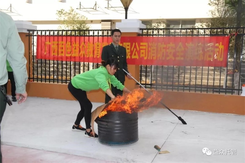 ? ? ? ?為進(jìn)一步提高員工消防安全防范意識(shí),增強(qiáng)員工對(duì)突發(fā)火災(zāi)的應(yīng)急處置能力,根據(jù)《廣西百色益眾教育發(fā)展有限公司2018年消防宣傳月活動(dòng)方案》安排,2018年11月8日,廣西百色益眾教育發(fā)展有限公司聯(lián)合百色市市安防火中心在我司承接托管業(yè)務(wù)的百色市第一小學(xué)校區(qū)開展了"防災(zāi)減災(zāi)進(jìn)校園 ?自防自救保安全"消防安全培訓(xùn)活動(dòng)。本次活動(dòng)結(jié)合近年來發(fā)生的典型火災(zāi)案例,將消防知識(shí)和學(xué)校、學(xué)生安全緊密聯(lián)系起來,深入剖析了火災(zāi)案例的教訓(xùn)并詳細(xì)的講解了火災(zāi)類型、火災(zāi)成因、火災(zāi)最佳處置時(shí)機(jī)、應(yīng)急疏散跟自救逃生方法、各類滅火器材的使用等消防知識(shí)。為加深廣大員工對(duì)理論知識(shí)的理解,讓防災(zāi)減災(zāi)意識(shí)"入腦入心",本次活動(dòng)還相應(yīng)開展了現(xiàn)場(chǎng)初期火災(zāi)處置演練。通過本次活動(dòng),廣大員工的消防安全意識(shí)得到了進(jìn)一步提高,應(yīng)急疏散和避險(xiǎn)能力有了質(zhì)的飛躍,為我司更好的為學(xué)校、學(xué)生提供貼心服務(wù)打下了良好的基礎(chǔ)。