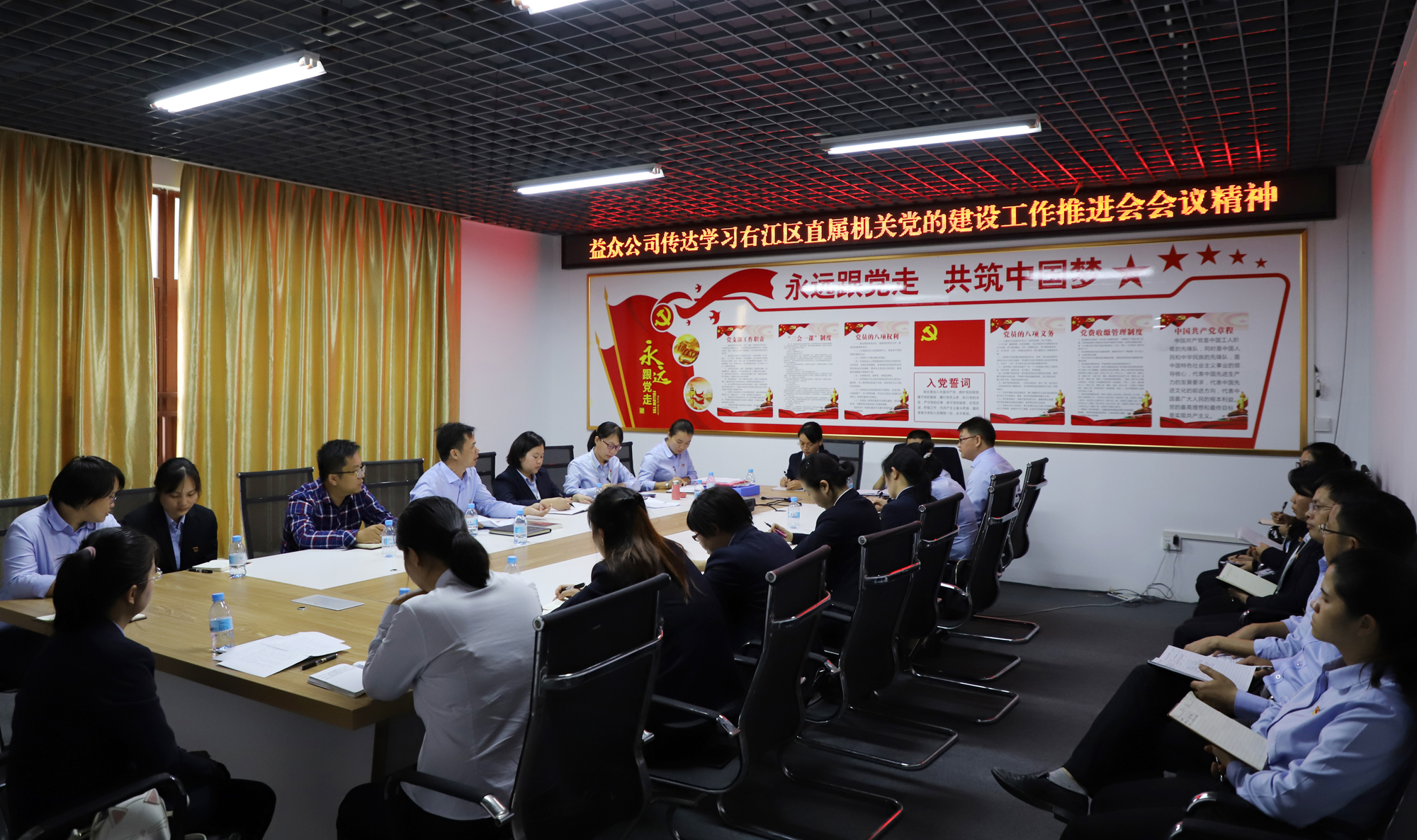 ????????會議要求,一是要狠抓思想建設(shè),注重激發(fā)全員主動參與黨建的積極性。強(qiáng)化黨員身份意識,自覺在思想上、行動上同右江區(qū)委保持高度一致,發(fā)揮主觀能動性,積極主動參與黨建工作;二是要狠抓政治建設(shè),注重加強(qiáng)國有企業(yè)黨建各項工作,堅決在黨的領(lǐng)導(dǎo)下落實開展各項經(jīng)濟(jì)指標(biāo)建設(shè)工作;三是要狠抓規(guī)范化建設(shè),提升企業(yè)職工的規(guī)范化意識;四是要狠抓特色建設(shè),注重涵養(yǎng)“紅色文化浸潤、紅色基因傳承”黨建精神品質(zhì),總結(jié)挖掘國有獨資企業(yè)黨建內(nèi)涵;五是要狠抓法治建設(shè),確保企業(yè)各項經(jīng)營活動合法合規(guī)。