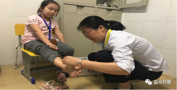 托管老師為孩子處理小傷口