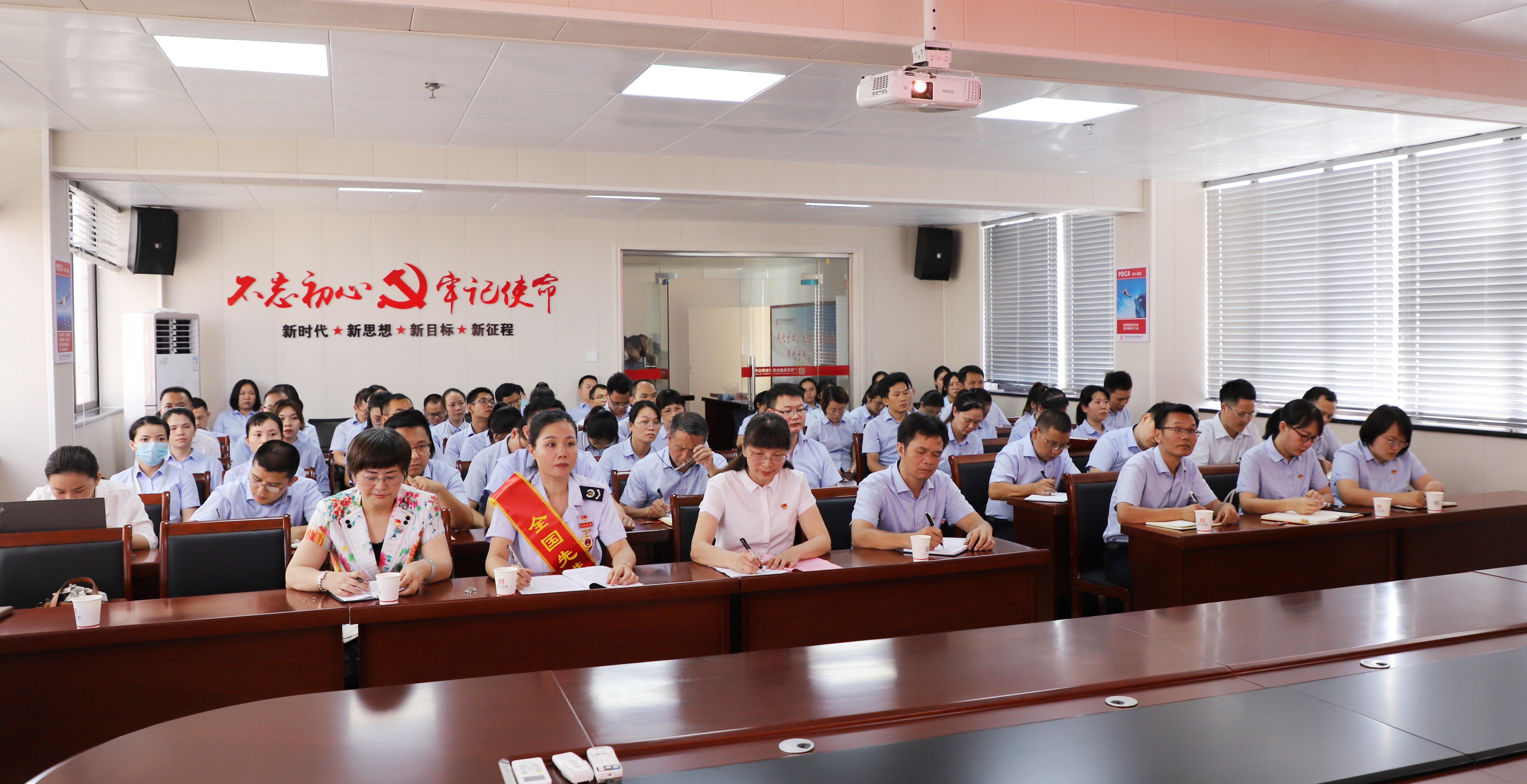 ????????6月18日,百色市工會黨史學(xué)習(xí)教育——“百名工會主席”講黨課和先進(jìn)人物專題宣講活動(益眾公司專場)在益眾公司城北路辦公區(qū)11樓會議室舉行。百色市總工會黨組成員、經(jīng)審會主任黃光日,全國先進(jìn)工作者、全國五一勞動獎?wù)?、國家稅?wù)總局百色市右江區(qū)稅務(wù)局稅源管理股副股長林恒和自治區(qū)先進(jìn)工作者、廣西特級教師、自治區(qū)德育先進(jìn)工作者百色市逸夫小學(xué)校長韋蘇寧分別作黨史黨課、黨史學(xué)習(xí)教育宣講報告,右江區(qū)總工會黨組書記、常務(wù)副主席覃璘清主持會議。益眾公司領(lǐng)導(dǎo)、全體黨員、入黨積極分子、職工代表等約80人參加宣講活動。