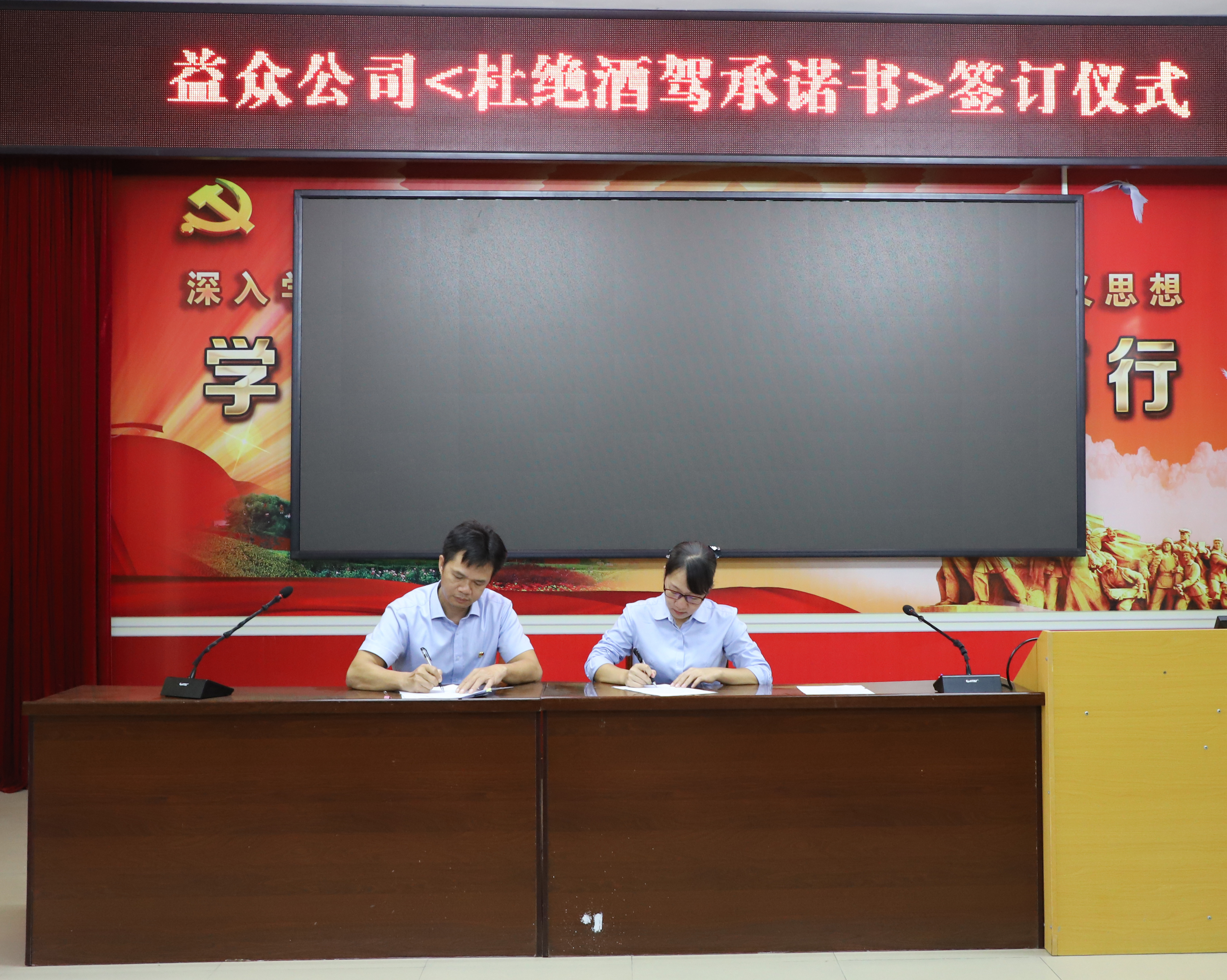 ????????黨課結(jié)束后,黨支部委員組織對違紀案例進行通報學習。黨支部書記岑文同志對黨支部下一階段的重點工作進行了部署安排,并與全體黨員簽訂《杜絕酒駕醉駕承諾書》。