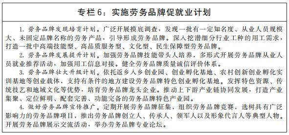 穩(wěn)定和擴(kuò)大農(nóng)村勞動(dòng)力外出就業(yè)規(guī)模。廣泛開展區(qū)域間勞務(wù)協(xié)作,健全勞務(wù)輸入集中區(qū)域與勞務(wù)輸出省份對(duì)接協(xié)調(diào)機(jī)制,加強(qiáng)勞動(dòng)力跨區(qū)域精準(zhǔn)對(duì)接,發(fā)展勞務(wù)組織和經(jīng)紀(jì)人,有序組織輸出地農(nóng)村勞動(dòng)力外出務(wù)工。培育一批有地域特色、行業(yè)特征、技能特點(diǎn),帶動(dòng)農(nóng)村勞動(dòng)力就業(yè)效果好的勞務(wù)品牌。實(shí)施農(nóng)民工素質(zhì)提升工程,推進(jìn)新生代農(nóng)民工職業(yè)技能提升計(jì)劃。創(chuàng)建一批農(nóng)村勞動(dòng)力轉(zhuǎn)移就業(yè)示范縣。