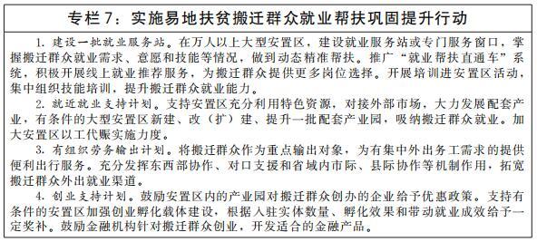穩(wěn)定脫貧人口就業(yè)。健全脫貧人口、農(nóng)村低收入人口就業(yè)幫扶長(zhǎng)效機(jī)制,保持脫貧人口就業(yè)領(lǐng)域的扶持政策、資金支持、幫扶力量總體穩(wěn)定。健全有組織勞務(wù)輸出工作機(jī)制,將脫貧人口作為優(yōu)先保障對(duì)象,穩(wěn)定外出務(wù)工規(guī)模。支持脫貧地區(qū)大力發(fā)展當(dāng)?shù)貎?yōu)勢(shì)特色產(chǎn)業(yè),繼續(xù)發(fā)揮就業(yè)幫扶車間、社區(qū)工廠、衛(wèi)星工廠等就業(yè)載體作用,為脫貧人口創(chuàng)造就地就近就業(yè)機(jī)會(huì)。聚焦國家鄉(xiāng)村振興重點(diǎn)幫扶縣、易地扶貧搬遷安置區(qū),積極引進(jìn)適合當(dāng)?shù)厝罕娋蜆I(yè)需求的勞動(dòng)密集型、生態(tài)友好型企業(yè)(項(xiàng)目),增加本地就業(yè)崗位,組織專項(xiàng)就業(yè)服務(wù)活動(dòng)實(shí)施集中幫扶。