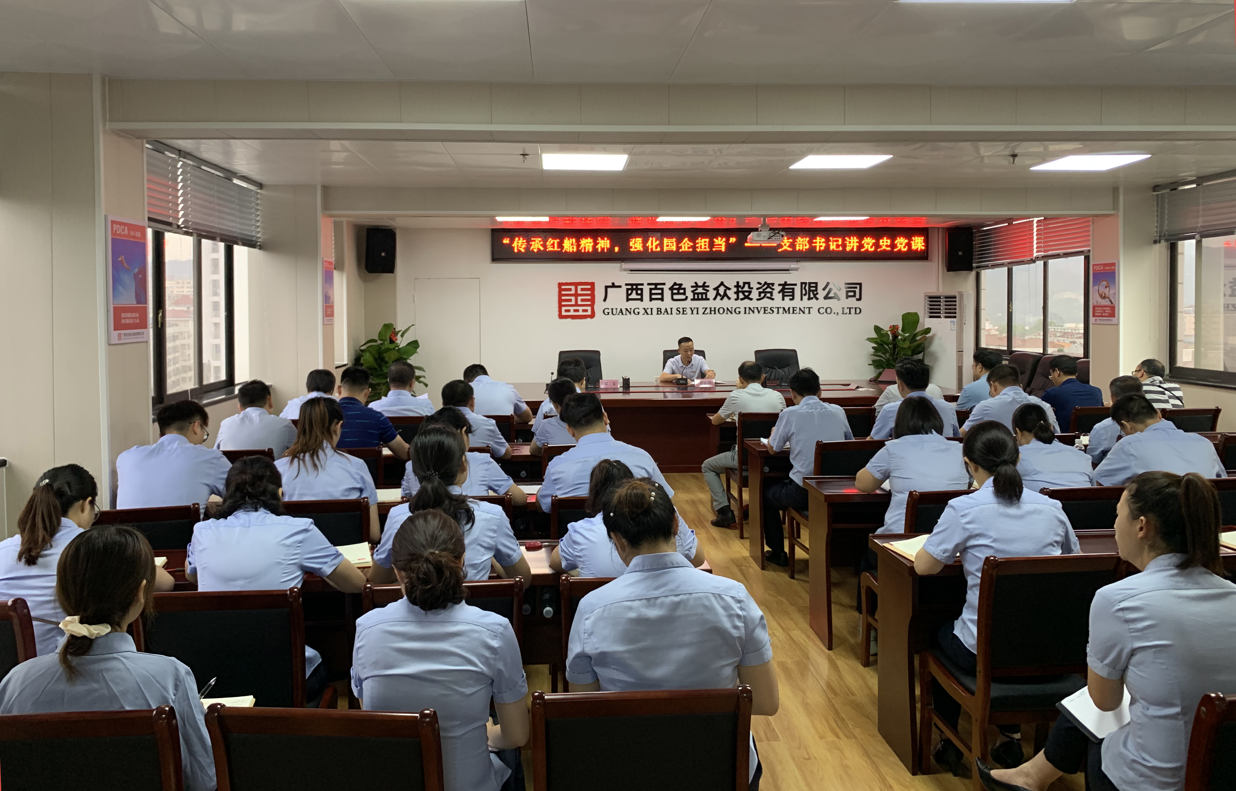 ????????為貫徹落實(shí)百色市、右江區(qū)關(guān)于開展“書記講黨史”活動(dòng)的有關(guān)工作部署,進(jìn)一步推動(dòng)企業(yè)黨史學(xué)習(xí)教育走深走實(shí),6月11日上午,右江區(qū)國(guó)資中心黨支部書記、主任覃春明到益眾公司開展“書記講黨史”活動(dòng),益眾公司領(lǐng)導(dǎo)干部、全體黨員、入黨積極分子約60余人參加了活動(dòng)。