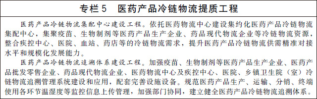 完善醫(yī)藥產(chǎn)品冷鏈物流設(shè)施網(wǎng)絡(luò)。鼓勵(lì)醫(yī)藥流通企業(yè)、藥品現(xiàn)代物流企業(yè)建設(shè)醫(yī)藥物流中心,完善醫(yī)藥冷庫(kù)網(wǎng)絡(luò)化布局及配套冷鏈設(shè)施設(shè)備功能,提升醫(yī)藥產(chǎn)品冷鏈全程無(wú)縫銜接的信息化管理水平。推動(dòng)醫(yī)藥流通企業(yè)按《藥品經(jīng)營(yíng)質(zhì)量管理規(guī)范》要求配備冷藏冷凍設(shè)施設(shè)備,支持疾控中心、醫(yī)院、鄉(xiāng)鎮(zhèn)衛(wèi)生院(室)等醫(yī)療網(wǎng)點(diǎn)提高醫(yī)藥產(chǎn)品冷鏈物流和使用環(huán)節(jié)的質(zhì)量保障水平。加強(qiáng)醫(yī)藥物流中心與冷鏈末端的無(wú)縫銜接,鼓勵(lì)發(fā)展多溫共配、接力配送等模式,探索發(fā)展超低溫配送,構(gòu)建廣覆蓋、高效率、低成本、安全可靠的醫(yī)藥產(chǎn)品冷鏈物流網(wǎng)絡(luò)。