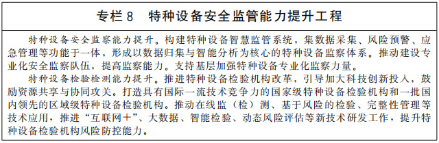 加強特種設備安全隱患治理。嚴格落實特種設備生產(chǎn)和使用單位安全管理主體責任。健全特種設備風險管控、隱患治理雙重預防機制,完善雙重預防體系、標準、規(guī)范。加強對重點區(qū)域、重點時段、重點場所、重點設備的監(jiān)管和隱患排查,確保安全規(guī)范使用特種設備。扎實推進特種設備安全專項整治三年行動,深入開展危化品相關特種設備、油氣長輸管道、起重機械、電梯、電站鍋爐、大型游樂設施等安全隱患專項治理和“回頭看”。建立重大活動、重大項目特種設備安全保障工作機制。適應科技創(chuàng)新和能源變革需要,加強和完善對涉氫特種設備的監(jiān)管。加強特種設備事故預防、調查處理、統(tǒng)計分析與應急能力建設。